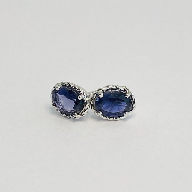 Brinco em ouro branco 18k com Iolitas 7x5 mm.
